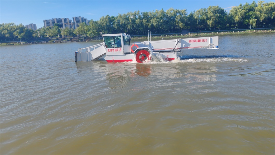 水草割收機(jī)亮相清水河